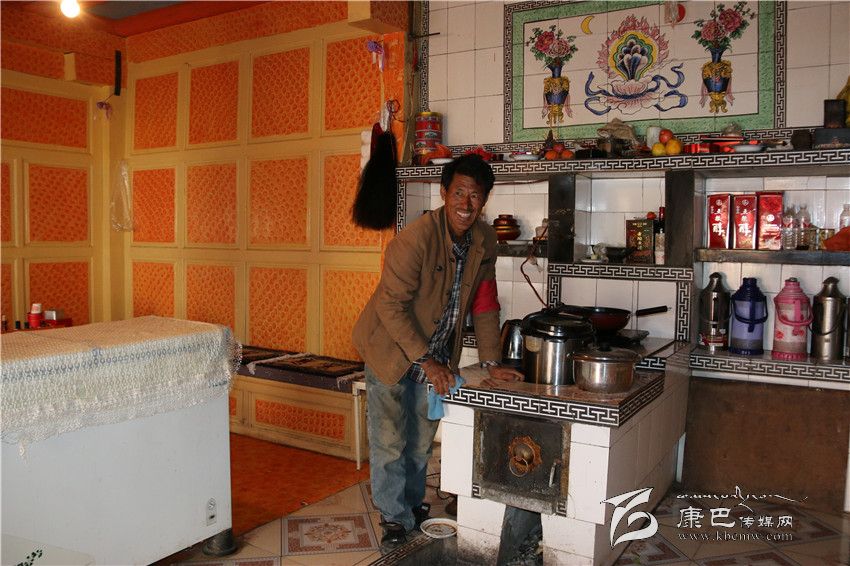 移民扎西彭措正在打掃廚房。