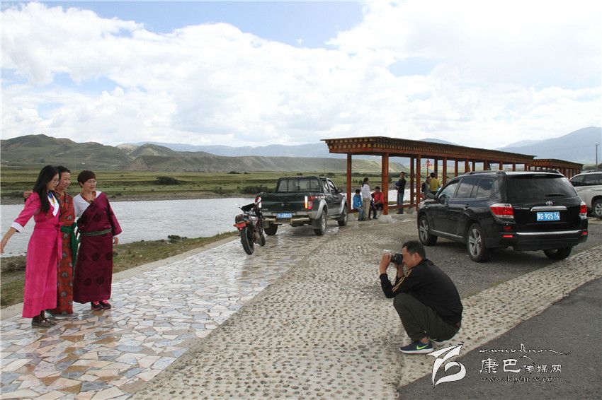 圖為游客在理塘濯桑無量河觀景臺(tái)拍照留影。