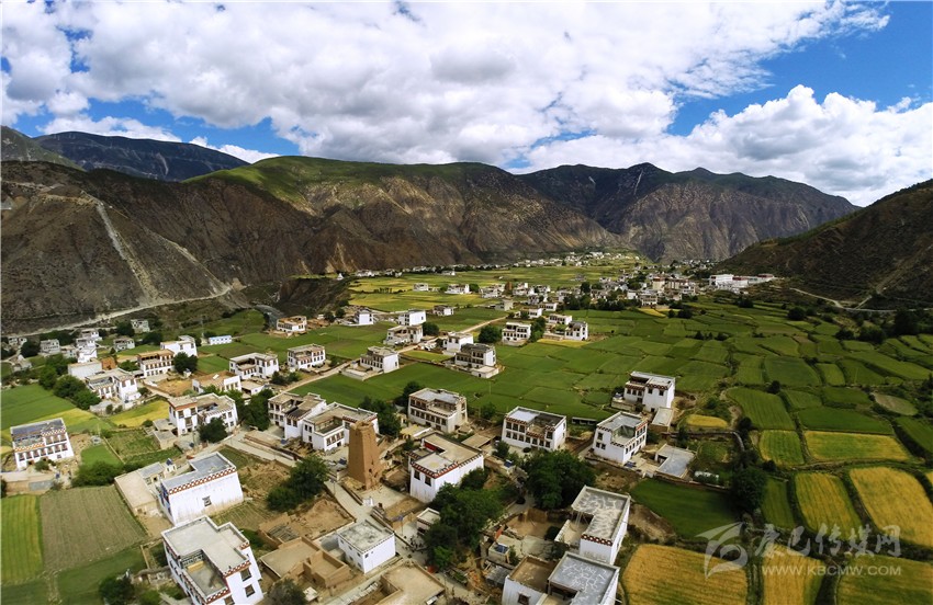 筆者來到青麥鄉(xiāng)木差村,彎彎曲曲的繞村路,沿著一棟棟獨具高原特色的藏族新居蜿蜒,塊塊農田如翡翠般點綴在白色藏房之間,好一幅村中田、田中村的美景。
