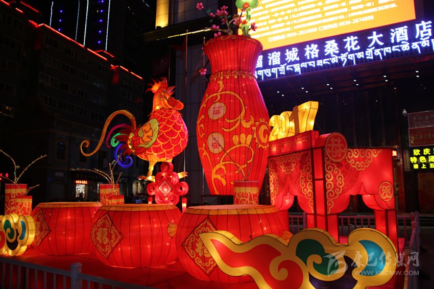 據(jù)該公司負責本次花燈設計的設計師鄭才學介紹,本次花燈每組主題不同,以全新的設計理念、歡樂祥和的氛圍、獨具特色的造型,向世人展現(xiàn)獨特的甘孜魅力。向陽橋頭的花燈主題為新春快樂,整個花燈呈火紅色,巨型“春”字搭配藏族繪畫中最常見但寓意深刻的吉祥八寶圖案,以及舞獅子、大紅燈籠、中國結(jié)等融為一體,為來到康定的客人第一時間送上熱情的新春問候;情歌廣場的花燈主題為鼓舞康定,以被譽為中國民間藝術(shù)瑰寶的大紅鼓作為人民歡慶盛世、贊美和諧的情感載體,充滿雄渾之氣,寓意著我州在時代發(fā)展的浪潮中擊鼓奮進、得勝而鳴;情歌大廈門口的花燈主題為金雞送平安,以中國傳統(tǒng)生肖年文化為背景,配合中國結(jié)和爆竹,喜慶而不失莊重,寓意著為全州人民送去平安吉祥;將軍橋頭的花燈主題為童子賀歲,火紅的燈籠搭配喜慶的福娃及爆竹,為全州各族人民送上新年的祝福;17隊三岔路口的花燈主題為和諧康定,巨大的荷花藝術(shù)造型結(jié)合動感的LED光源,造型高低錯落,寓意和諧、和美,體現(xiàn)在州委、州政府的堅強領導下,人民安居樂業(yè),和諧美滿。最霸氣、最吸引人的當屬情歌公園主題為吉祥多福的花燈,整個花燈由六個直徑一米半左右的福字燈籠,環(huán)繞一個直徑達3米左右的福字燈籠組合而成,主燈籠的燈柱高大而厚重,環(huán)繞的六個燈柱上配有吉祥八寶圖案,寓意著全州物產(chǎn)豐富,人民的生活紅紅火火,一年更比一年好。