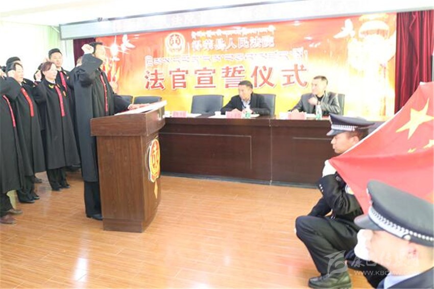 本網(wǎng)訊(張巍 文/圖) “我是中華人民共和國法官,堅(jiān)決擁護(hù)憲法,永遠(yuǎn)忠于法律,恪盡職守,秉公辦案,清正廉潔,公正司法,為維護(hù)社會(huì)正義、捍衛(wèi)法律尊嚴(yán)而奮斗!” 近日,得榮縣法院舉行了首批入額法官宣誓儀式,12名首批入額法官在國徽和國旗下莊嚴(yán)宣誓。