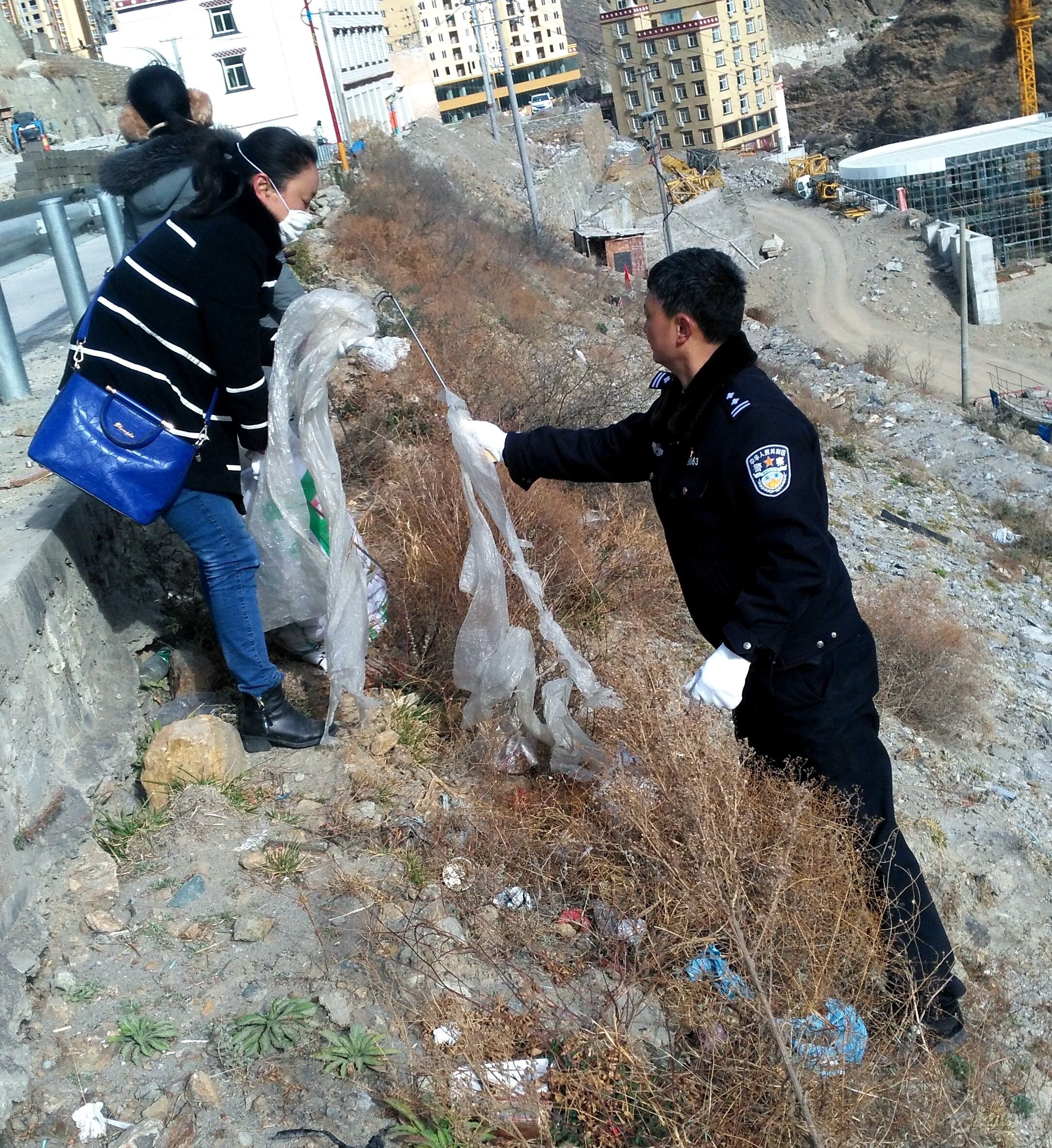 本網(wǎng)訊(金孟沙 為響應縣委、縣政府“潔凈美好家園,建設宜居丹巴”號召,近日,丹巴縣森林公安局黨支部組織全體黨員及志愿者開展了城區(qū)三岔河至梭坡片區(qū)后山垃圾義務清掃活動。圖為黨員和志愿者在清掃后山垃圾。