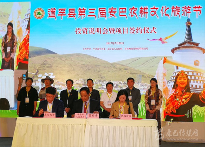 本網(wǎng)訊(楊琦 記者 李婭妮)7月29日下午,2017年道孚縣第三屆安巴農(nóng)耕文化旅游節(jié)投資說明會(huì)暨項(xiàng)目簽約儀式在縣文化園區(qū)舉行。當(dāng)天,現(xiàn)場(chǎng)簽約9個(gè)項(xiàng)目,合同投資金額達(dá)8.34億元。