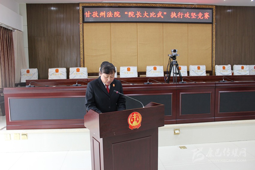 6月8日,全州基層法院“院長(zhǎng)大比武”執(zhí)行攻堅(jiān)競(jìng)賽在州中級(jí)人民法院舉行,瀘定縣人民法院院長(zhǎng)鐘天蓉在競(jìng)賽階段