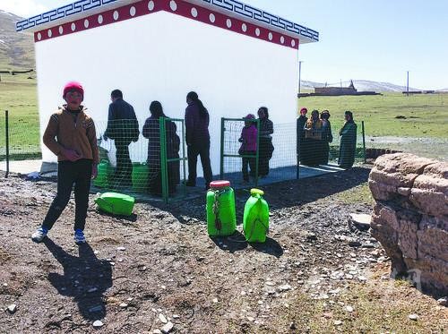 7月24日,在格孟鄉(xiāng)格貢村,記者在一牧民定居點看到,一道半人高的綠色柵欄保護(hù)著一處泵房免受牲畜侵?jǐn)_,里面就是剛投入使用的一口包蟲病防治井。藏族群眾擁加說,出水那天,周圍的大人小孩都拿著水桶去接水,而且這井冬天也能用。