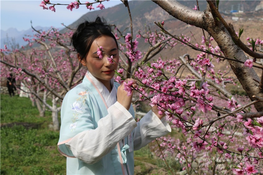春天以桃花綻放為信號(hào),一朵又一朵,一樹(shù)又一樹(shù),鋪滿山坡,伸向河谷,蔚然成花海。1990畝的“幸福桃源”以溫厚的胸懷迎迓四方來(lái)客。