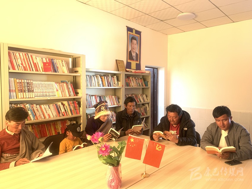 “平時只要有空,我們就到這里來聚會,看看書、聊聊天,有時村里會組織大家集中收看宣傳黨委政府政策的宣傳片,讓我們能及時了解國家方針政策?!?月13日午飯后,色達縣大則鄉(xiāng)厚門村的文化活動室,和往常一樣,又陸陸續(xù)續(xù)迎來三三兩兩的村民們。一樓的圖書室,幾位村民正在安靜地看書,有漢語的,也有藏語的,他們身后兩面的書架上,收藏了上萬本各類書籍,其中藏語書籍占了一半以上,還有一些光碟,都是歷次中央、省、州重大會議的宣講內(nèi)容。在二樓的會客室,49歲的村民擁巴和鄉(xiāng)親們正熱烈地聊著今年脫貧攻堅的形勢。