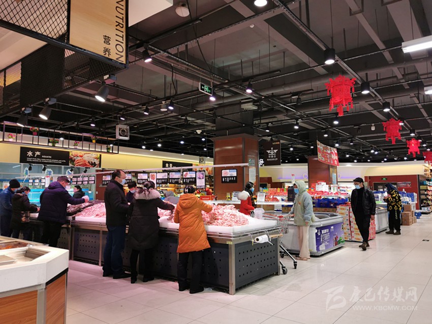 在二樓的豬肉供應(yīng)攤點(diǎn),康定冷鏈凍制品有限責(zé)任公司積極響應(yīng)政府的號召,為了讓市民能夠買到放心的新鮮豬肉,1月30日,該公司門店冷鏈生鮮肉業(yè)共計(jì)屠宰了4頭生豬,該公司職員告訴記者,疫情期間,豬源供應(yīng)緊張,并且要經(jīng)過層層檢疫才能進(jìn)入市場,但是公司仍然積極尋找豬源,保證疫情期間的豬肉供應(yīng),所以即便是到了下午仍能買到新鮮豬肉。