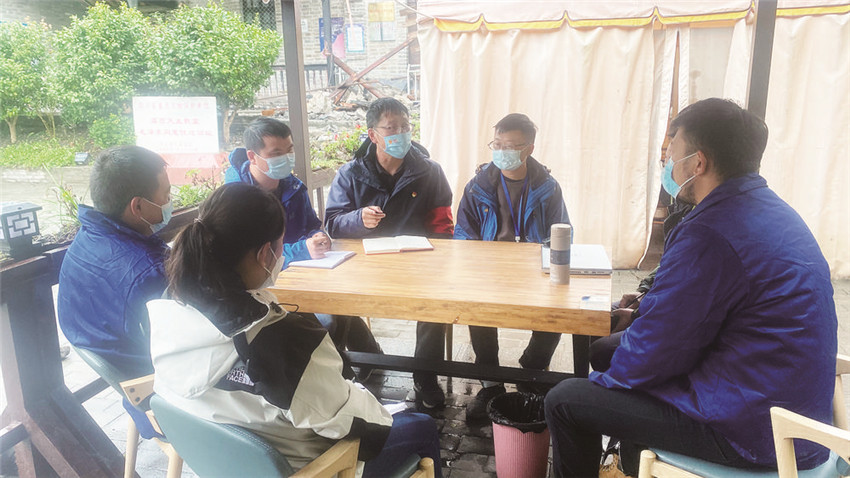 雅江、康定大隊的消防員將20多頂帳篷完好無損地送至磨崗嶺村,用時4個多小時。其他的應(yīng)急救援隊伍,也幾乎同時抵達,大家分工合作,開始在村子的安全地帶搭建帳篷。村子里的一部分村民早早在路邊支起兩口鍋,一口鍋燒滿熱水,另一口鍋煮著米粥。另一部分村民則找到消防員,希望他們?nèi)タ逅姆课堇飺尵缺谎诼竦纳钗镔Y和財產(chǎn)。