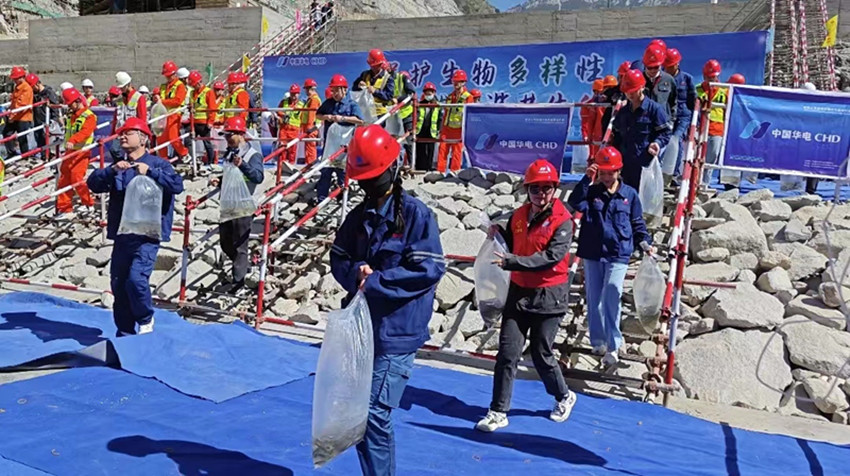 “今年放流的魚苗種類繁多,有四川裂腹魚、短須裂腹魚、長(zhǎng)絲裂腹魚、裸腹葉須魚、軟刺裸裂尻等,其中,裸腹葉須魚為中國(guó)瀕危動(dòng)物紅皮書‘易危’魚類,四川裂腹魚為四川省重點(diǎn)保護(hù)魚類。”華電金上葉巴灘分公司負(fù)責(zé)人說,為減少工程建設(shè)對(duì)魚類及水生生物的影響,公司建立了萬里長(zhǎng)江第一級(jí)魚類增殖放流站,是國(guó)內(nèi)首個(gè)截流當(dāng)年開展增殖放流的水電站,自2019年首次舉辦試驗(yàn)性增殖放流活動(dòng)以來,累計(jì)放流106萬尾特有珍稀魚苗。同時(shí)為進(jìn)一步推進(jìn)金沙江魚類種群恢復(fù)、水域生態(tài)環(huán)境的改善,公司還追加了1.7億元的環(huán)保投資,增設(shè)了一臺(tái)生態(tài)備用機(jī)組,提高運(yùn)行期生態(tài)下泄流量的安全度和保證率。聯(lián)合華中農(nóng)業(yè)大學(xué)開展黃石爬鮡、姚氏高原鰍等遠(yuǎn)期放流魚種人工繁殖技術(shù)研究,采取分層取水技術(shù),有效改善水庫(kù)下泄水溫,為魚類繁殖生存提供適宜條件。