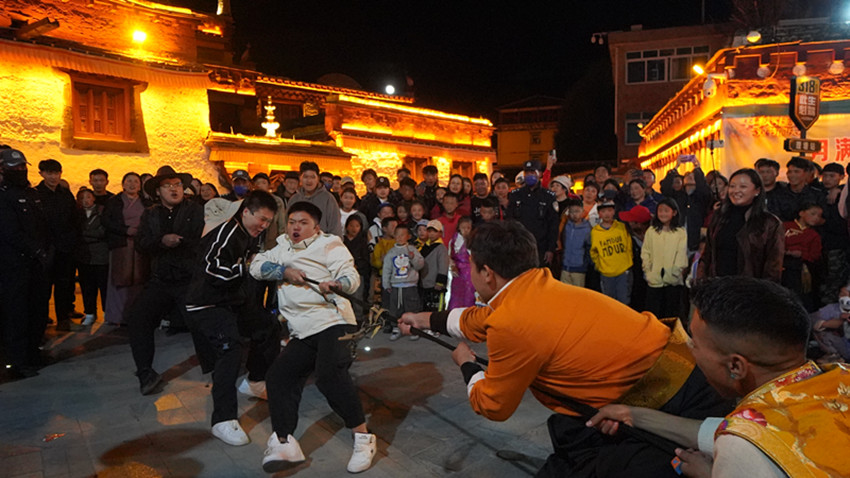 “江流宛轉(zhuǎn)繞芳甸,月照花林皆似霰……”農(nóng)歷八月十五,月色籠罩下的勒通古鎮(zhèn)·千戶藏寨,流淌著中華詩(shī)歌的悠悠古韻。9月29日晚,“我們的節(jié)日·中秋”新時(shí)代文明實(shí)踐系列活動(dòng)之“月滿理塘、愛我中華”文藝展演,引得群眾和游客爭(zhēng)相拍照。藏戲舞蹈“扎西雪巴”、藏族踢踏舞讓觀眾領(lǐng)略到濃郁的民族風(fēng)情,詩(shī)朗誦伴舞《我愛你,中國(guó)》引人入勝……一場(chǎng)場(chǎng)精彩演出展現(xiàn)了傳統(tǒng)文化的多重魅力。