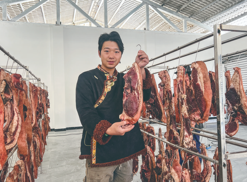 在洛桑和鄉(xiāng)親們的共同努力下,第一批“等風(fēng)兔”即食手撕兔產(chǎn)品成功面市。同年6月,洛桑與妻子帶著這些手撕兔來到第十九屆中國西部國際博覽會(huì),經(jīng)“線上+線下”模式銷售,很快便搶購一空。