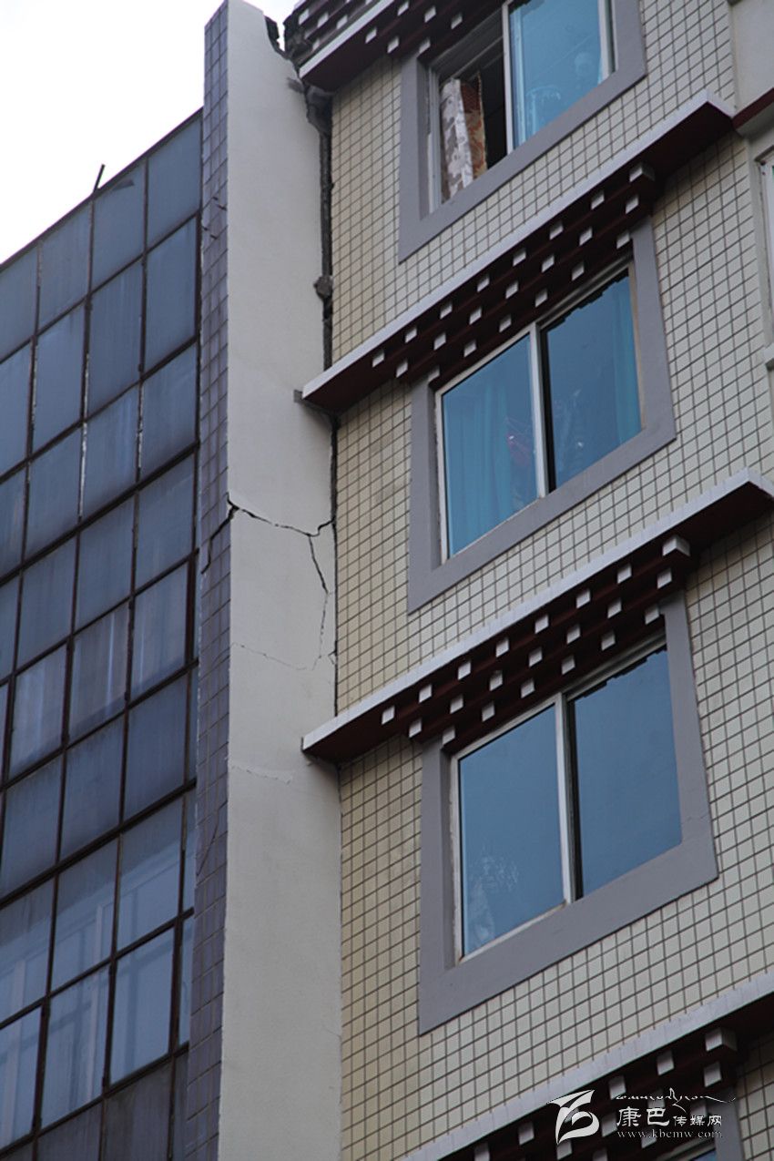 剛沖出報(bào)社不遠(yuǎn),記者就發(fā)現(xiàn)光明路光明小區(qū)附近的小巷中有一些外墻磚不規(guī)則地散落在地上,抬頭一看,發(fā)現(xiàn)一幢建筑的外墻已經(jīng)脫落了一大塊;在州統(tǒng)計(jì)局上側(cè),一幢建筑外墻出現(xiàn)了裂縫,過(guò)往的人們都在紛紛觀望,還有人在用手機(jī)拍攝。在西大街,有一幢建筑的陽(yáng)臺(tái)出現(xiàn)移位,與主體建筑間形成了裂縫;在州人民醫(yī)院,門(mén)診部大樓出現(xiàn)了嚴(yán)重裂縫,大樓內(nèi)的人員已經(jīng)全部撤離。記者在采訪中發(fā)現(xiàn),此次地震使康定城區(qū)內(nèi)建筑出現(xiàn)了不同程度的外墻磚脫落、裂縫等,城郊有圍墻倒塌的情況發(fā)生,城區(qū)沒(méi)有出現(xiàn)建筑物倒塌的情況。