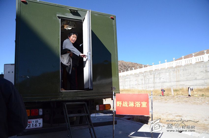 “哇,洗個(gè)熱水澡好舒服!謝謝武警叔叔!”11月29日13時(shí)許,木雅祖慶學(xué)校初三年級學(xué)生達(dá)洛從野戰(zhàn)淋浴車洗完澡出來后,瀟灑地甩了一下濕漉漉的頭發(fā)高興地說。已經(jīng)三周沒有洗澡的他說,地震后學(xué)校洗澡設(shè)備都壞了,很多同學(xué)都很多天沒有洗澡了。