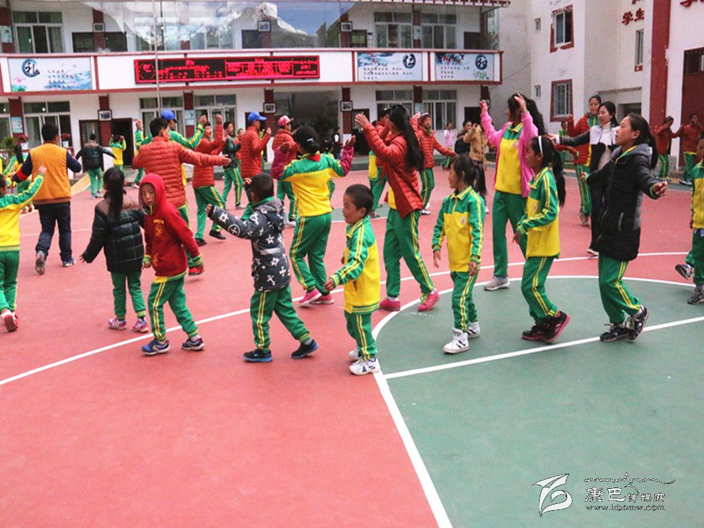 學生們在操場上跳鍋莊。