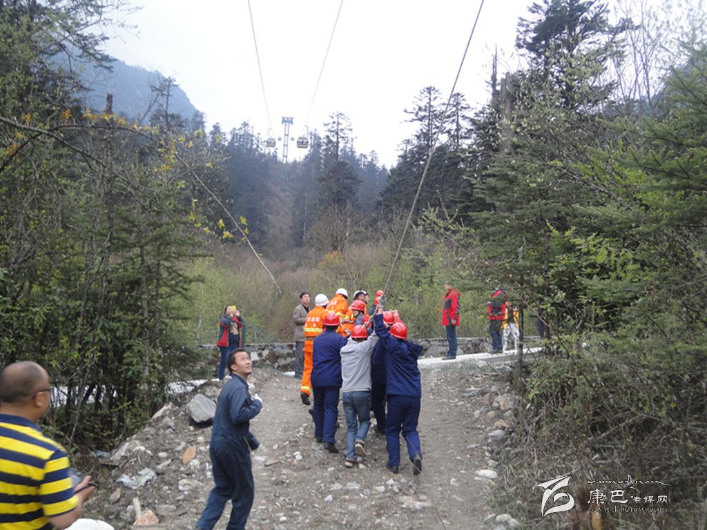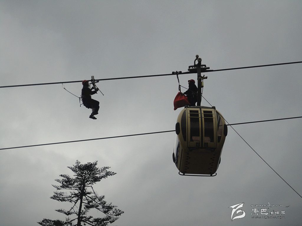 應(yīng)急演練活動是模擬索道發(fā)生脫索故障,開展人工救護(hù)應(yīng)急訓(xùn)練。在演練活動中,海螺溝客運(yùn)索道出現(xiàn)故障不能運(yùn)轉(zhuǎn),在1C支架和2#支架之間,兩個車廂共有三名游客滯留空中。海螺溝旅游索道公司立即啟動應(yīng)急預(yù)案,救護(hù)總指揮下達(dá)救援指令。后勤組成員對著車廂喊話,穩(wěn)定游客情緒。救護(hù)小組全體人員,安全、有序、迅速到達(dá)各自崗位,地面工作人員與空中救援人員相互配合,同時密切注意被困乘客的安全情況,正確操作各項(xiàng)程序,僅用半個小時就將被困乘客送到地面,安全完成營救。地面輔助救護(hù)人員立即對被營救人員進(jìn)行現(xiàn)場檢查和救治,保障了被營救人員的生命安全,應(yīng)急演練活動圓滿完成。
