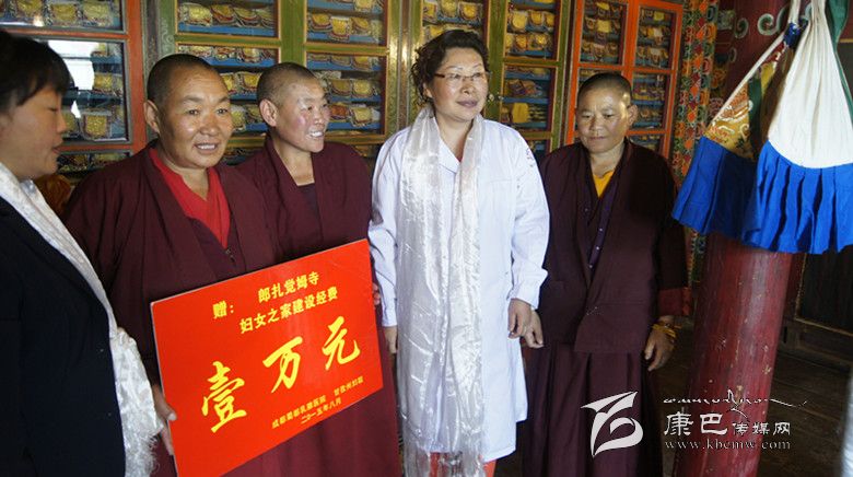 成都蜀都乳腺醫(yī)院向寺廟捐贈(zèng)了1萬(wàn)元“婦女之家”建設(shè)經(jīng)費(fèi),并為寺廟23名覺(jué)姆做了免費(fèi)彩超檢查。圖為捐贈(zèng)現(xiàn)場(chǎng)。  (州婦聯(lián) 供稿)