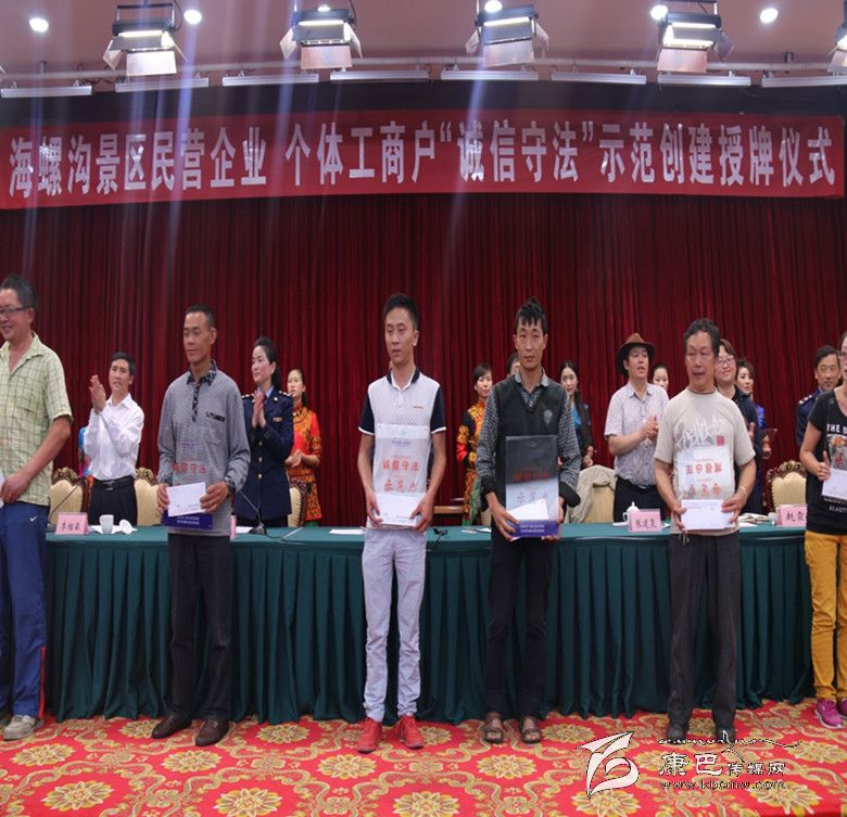 對(duì)公示無異議的178戶“誠信守法”示范創(chuàng)建戶命名授牌,由州工商局、海螺溝管理局授予甘孜州海螺溝景區(qū)"誠信守法示范戶",并頒發(fā)牌匾。 被授予“誠信守法示范戶” 178戶商家莊嚴(yán)宣誓:自愿申報(bào)成為“誠信守法”示范企業(yè)(個(gè)體工商戶),一定信守承諾、珍惜榮譽(yù),將“誠信”作為立業(yè)、興業(yè)的基石和名片,崇尚法律、敬畏法律,依法經(jīng)營。同時(shí),在“誠信守法”示范創(chuàng)建承諾書上莊重地簽下自己的名字。