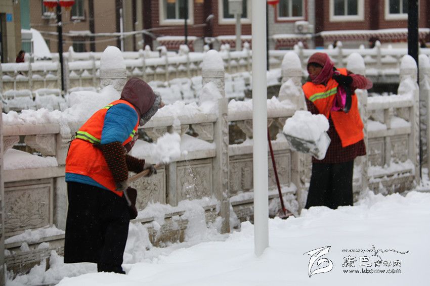 環(huán)衛(wèi)人員正在清理積雪。