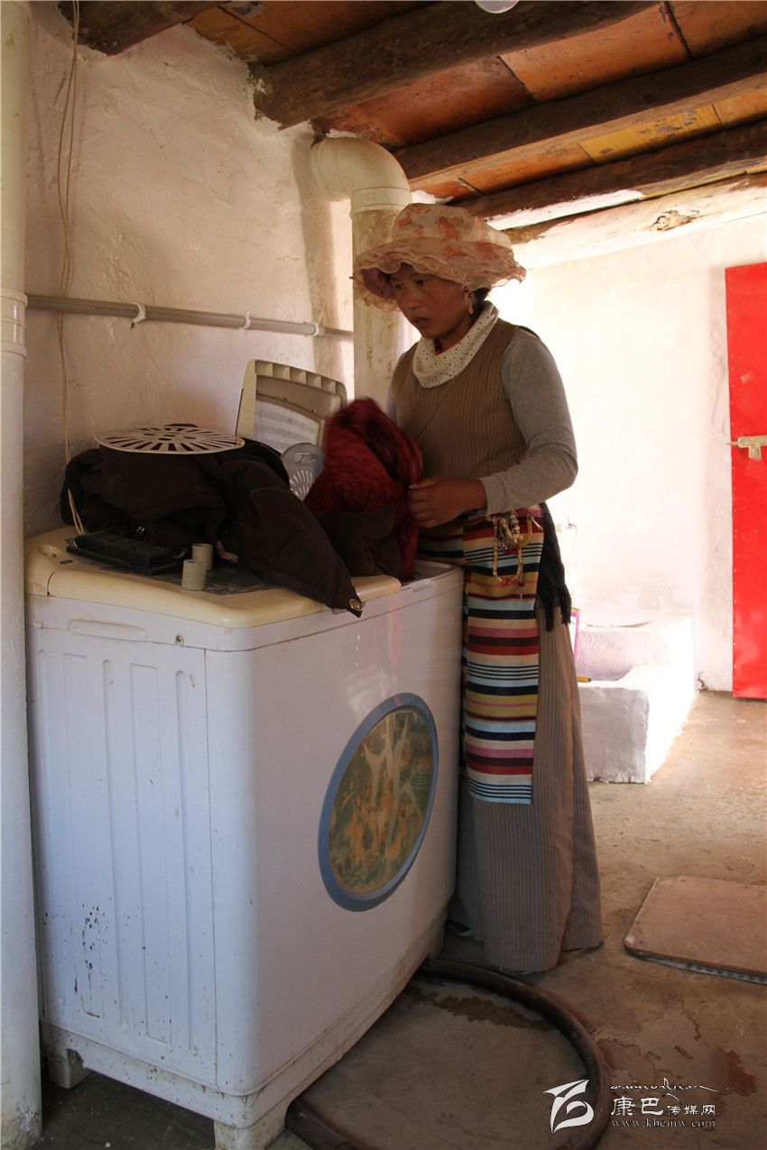 高城鎮(zhèn)澤曲村繞格曲珍終于可以用洗衣機(jī)洗衣服了。