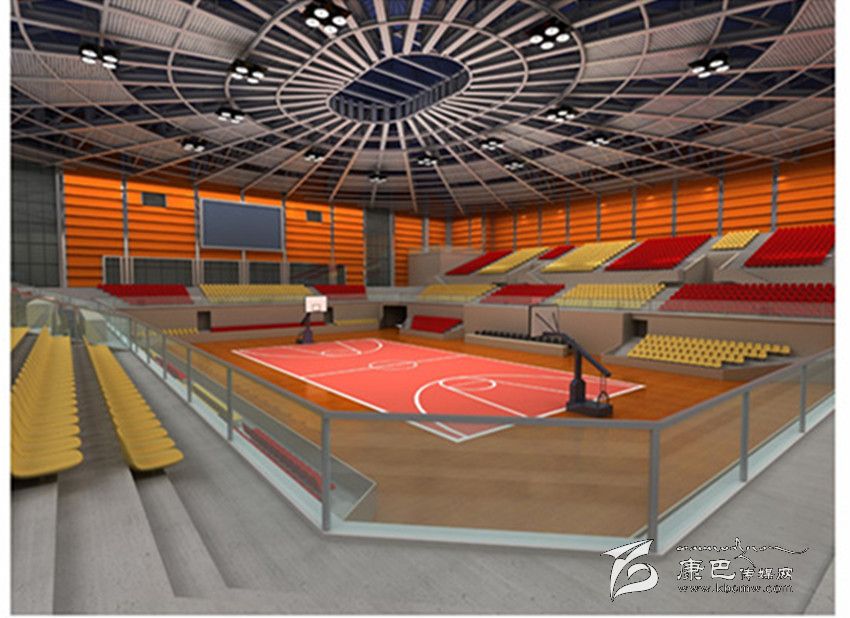 該館負一層為一個238車位的地下停車庫和若干設備用房。一層核心區(qū)是一個可進行籃球、排球、手球、羽毛球、乒乓球、體操等比賽的標準化綜合比賽場;周邊設休息室、會議室、消音室、醫(yī)療室、分線室、檢錄室、洗浴室、準備室、轉播室等附屬功能用房。利用該轉播室可以實現網絡、電視對場內活動的實時轉播。二層主要有醫(yī)務室和休息室。三層是控制中心機房、工作室。聲光控制室、計時計分屏室在四層。體育場內共設10個無障礙席位在內的2998個固定座席和730活動座位,分布在1至4層。