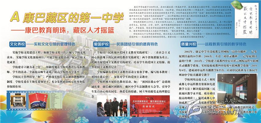 輝煌業(yè)績俱往矣,而今邁步從頭越??刀ㄖ袑W(xué)成功創(chuàng)建四川省一級(jí)示范性普通高中,康定中學(xué)歷史翻入新的一頁。學(xué)校將圍繞“建盛德實(shí)學(xué)康中校,做豪邁和美康中人”的“康中夢(mèng)”,把康中打造成全州基礎(chǔ)教育窗口、全省中學(xué)教育名校、全國藏區(qū)教育典范。