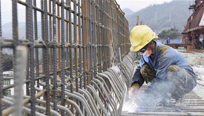 在雅康高速工地上,一名工人在焊接鋼筋(2016年12月26日攝)。新華社 發(fā)