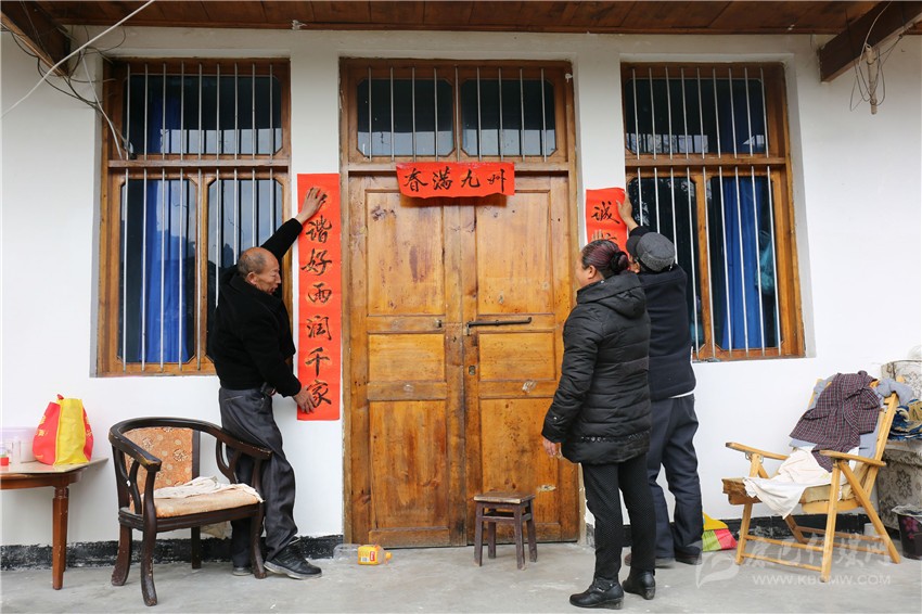 貼完自家的春聯(lián),老陳又到鄰居家?guī)兔N,見到鄰居蘭大爺家準(zhǔn)備的春聯(lián)與街上賣的不一樣,是手寫春聯(lián)。老陳一打聽才知道,原來海螺溝管理局宣教群團(tuán)處正開展“迎新春,送春聯(lián)”活動(dòng),這些手寫春聯(lián)正是蘭大爺特意去活動(dòng)現(xiàn)場免費(fèi)領(lǐng)取的??粗鴷◥酆谜啐堬w鳳舞的字體,老陳非常喜歡,轉(zhuǎn)頭對妻子說:“過兩天咱們也去要兩幅手寫春聯(lián)回來”。