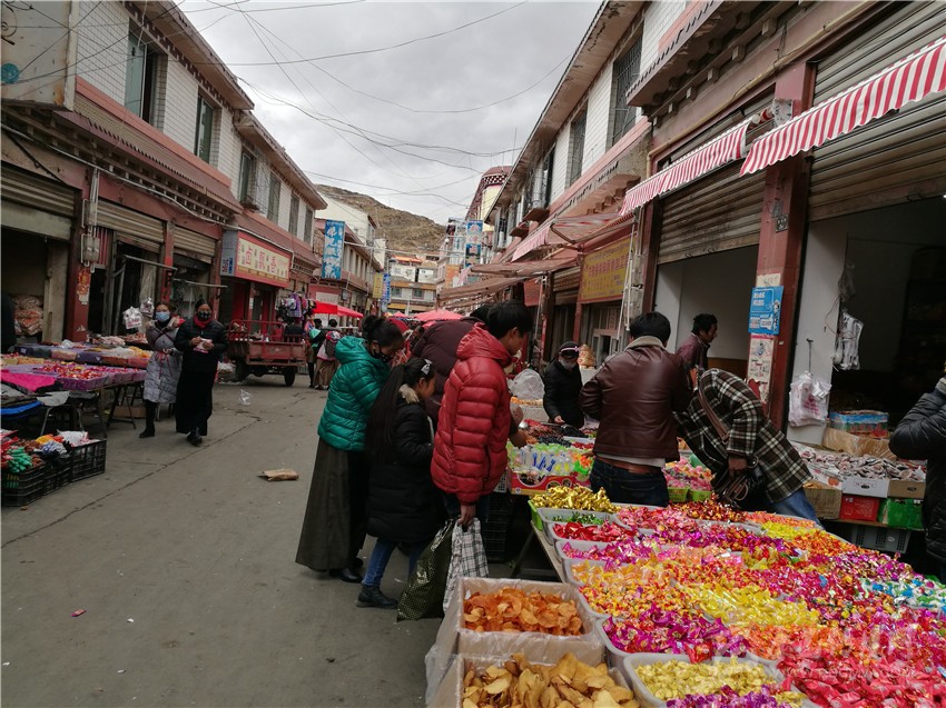 筆者在該縣副食店、超市看到,商家的各種促銷優(yōu)惠活動(dòng),吸引了不少農(nóng)牧民群眾,前來(lái)購(gòu)買年貨的群眾熙熙攘攘。各種涼鹵食品店的生意也相當(dāng)火爆?!翱爝^年了,吃的、用的和穿的都得買點(diǎn),過完藏歷年,就要忙春耕生產(chǎn)了。”手里拎著大包小包年貨的降措滿臉喜悅地說(shuō)。