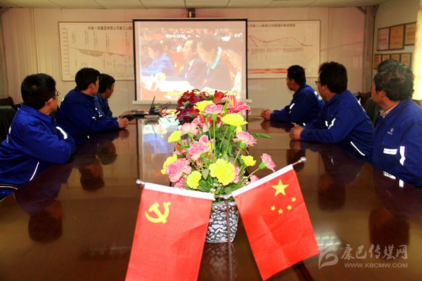 負(fù)責(zé)雀兒山隧道施工的中鐵一局干部職工正在收看開(kāi)幕大會(huì)直播。
