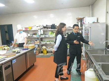 執(zhí)法人員指導(dǎo)餐飲食品安全。