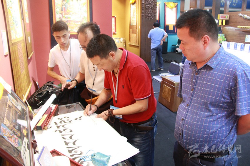 本屆文博會(huì),巴松鄧珠帶來了一件藏文書法作品《格薩爾王》,讓現(xiàn)場(chǎng)觀眾嘖嘖稱贊。孫先生說:“把書法作品用藏族唐卡藝術(shù)的裝裱方式來裝裱,真讓我開了眼界。這件作品圖文并茂,真是太棒了,讓我覺得甘孜這個(gè)地方特別神圣,令人向往。我以后有機(jī)會(huì)不僅要好好練習(xí)藏文書法,還要去甘孜旅游。”