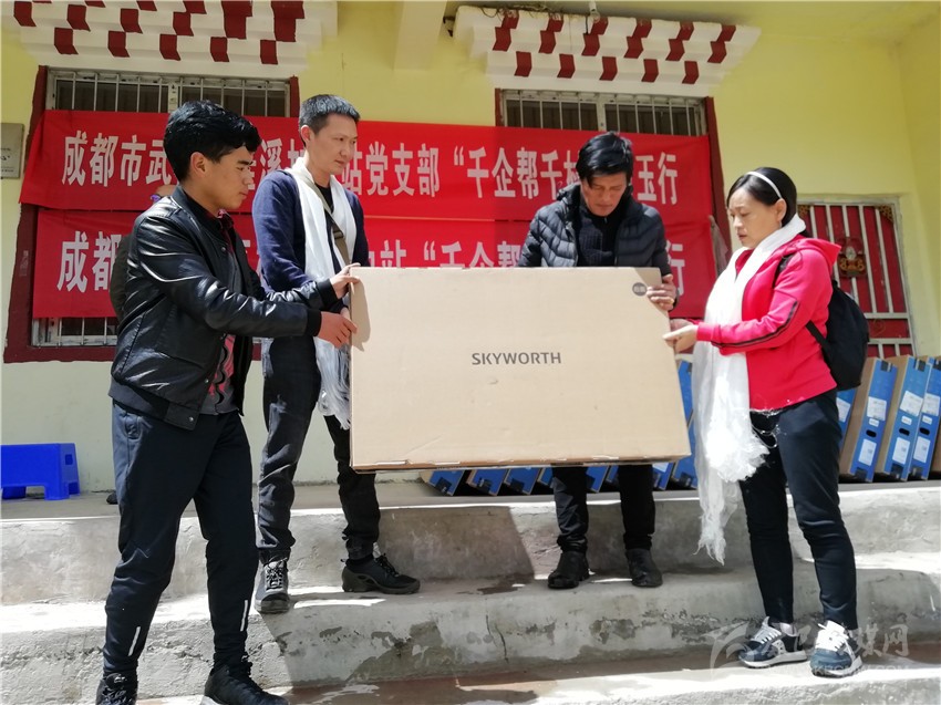 本網(wǎng)訊 為持續(xù)開(kāi)展“千企幫千村”對(duì)口幫扶活動(dòng),近日,成都市武侯區(qū)桂溪加油站組成對(duì)口幫扶工作組來(lái)到白玉縣納塔鄉(xiāng)措拉村,向建檔立卡貧困戶(hù)捐贈(zèng)了價(jià)值4萬(wàn)元的液晶電視機(jī)25臺(tái)?!拔壹业碾娨暀C(jī)早壞了,沒(méi)多余的錢(qián)去買(mǎi)新的,沒(méi)想到幫扶組這么遠(yuǎn)給我們送來(lái)了電視機(jī),今年國(guó)慶節(jié)我們?nèi)胰丝梢栽诩依锟撮啽搅?。”村民阿亞麥朵高興地說(shuō)。