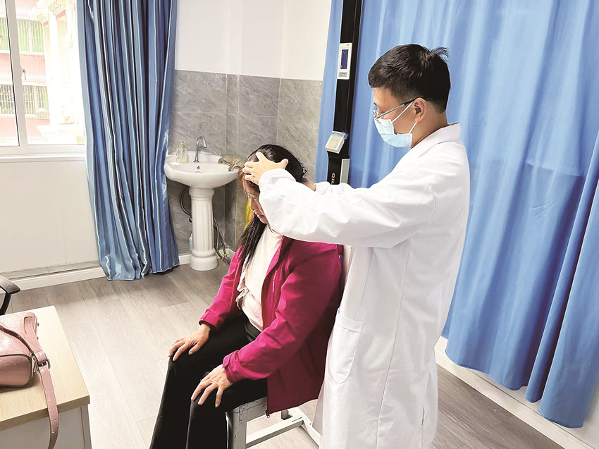 徐英俊通過(guò)檢查發(fā)現(xiàn)夫妻倆都患有較嚴(yán)重的退化性膝關(guān)節(jié)炎、關(guān)節(jié)腔積液、內(nèi)外側(cè)韌帶受損等疾病。經(jīng)過(guò)慎重考慮,徐英俊決定為其進(jìn)行中西醫(yī)結(jié)合治療,并為他們制定了一套詳細(xì)全面的治療方案。超聲引導(dǎo)下關(guān)節(jié)穿刺、超聲引導(dǎo)下隱神經(jīng)阻滯、頰針療法、針刺療法……徐英俊因地制宜開展了多項(xiàng)新技術(shù)、新項(xiàng)目,效果立竿見影。