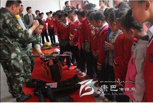 師生們?cè)诳刀h消防中隊(duì)副中隊(duì)長(zhǎng)李勇的帶領(lǐng)下,參觀了消防員宿舍、榮譽(yù)室、軍人俱樂部等。官兵們“豆腐塊”的被子引起了學(xué)生們濃厚的興趣和強(qiáng)烈的好奇心。不少孩子親自動(dòng)手,嘗試在消防官兵的指導(dǎo)下學(xué)習(xí)疊“豆腐”被子,并進(jìn)行了內(nèi)務(wù)整理。在消防器材展示環(huán)節(jié),師生們走進(jìn)車庫,中隊(duì)官兵介紹了各類消防器材裝備的名稱、性能和使用方法以及各類消防車、隔熱服、避火服、防化服和背戴空氣呼吸器等特勤器材的性能和使用方法。在消防安全課堂上,官兵們向?qū)W生們播放了《校園消防安全警示錄》,并結(jié)合實(shí)際向同學(xué)們講解了學(xué)校防火的重要性、火場(chǎng)逃生自救方法、初期火災(zāi)的撲救、滅火器的使用、如何報(bào)火警等基本消防知識(shí)。在聯(lián)歡活動(dòng)現(xiàn)場(chǎng),消防官兵傾力打造的舞蹈《小蘋果Style》贏得同學(xué)們滿堂喝彩,現(xiàn)場(chǎng)響起熱烈的掌聲。學(xué)生們帶來的《吉祥中國(guó)結(jié),美滿中國(guó)夢(mèng)》跳出了小朋友們的美滿幸福之情。文藝演出的最后,消防官兵們還為學(xué)生們帶來了消防時(shí)裝秀,穿著各式服裝的消防戰(zhàn)士閃亮登場(chǎng),向孩子們講解了這些服裝在各種災(zāi)害事故現(xiàn)場(chǎng)的用途。