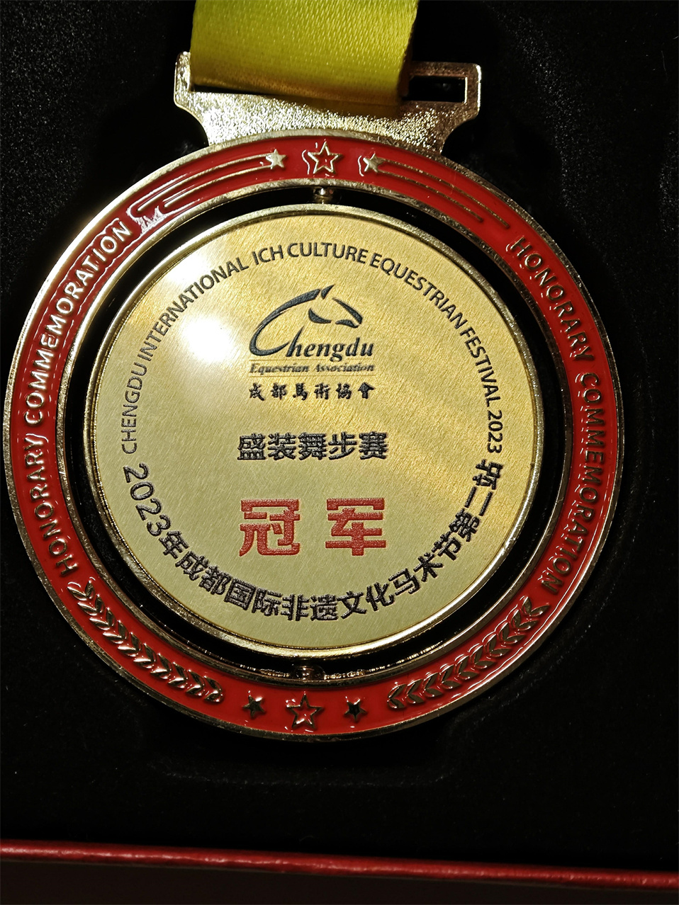 2023年6月,獲2023成都國際非遺文化馬術節(jié)(第二站)盛裝舞步賽初三組冠軍。