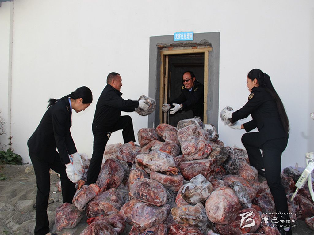 本網(wǎng)訊(周燕 魏麗雯 文/圖)11月17日,康定市在姑咱鎮(zhèn)屠宰場無害化處理間對今年4月份以來開展的牦牛肉市場專項整治活動中查獲的2000余公斤來源不明的問題牛肉進(jìn)行集中銷毀。