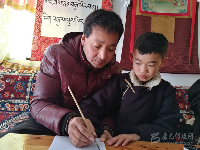 本網(wǎng)訊(余應(yīng)瓊 文/圖)“使用竹筆的時候拇指和食指握筆,要手腕用力,還要注意坐姿哦。”2月11日,元宵節(jié)這天,巴松鄧珠照例來到甘孜縣文化館,免費為喜歡藏文書法的青少年授課,對小一點的孩子,還手把手地教起來。