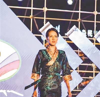 亞瑪措正在進行T臺走秀。