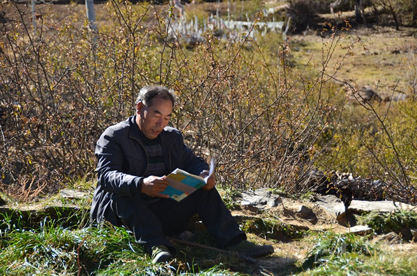 那一年,教室的過道里燃起熊熊的炭火,孩子們坐在溫暖的教室里,那郎朗的讀書聲久久縈繞在藏寨的上空。就這樣,復(fù)式班級的教學(xué)工作他一干就是十余年,后來,村里的兩位高中畢業(yè)生也走進(jìn)長納村小,長納村小的師資力量得到了補(bǔ)充。那一年,長納村小成立第一個教研組,阿布里擔(dān)任語文、數(shù)學(xué)教研組組長,在教研會議上,他將自己的教學(xué)經(jīng)驗(yàn)無私傳授給兩位代課教師。