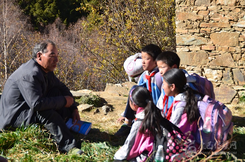 雖然代課教師的工資從當(dāng)年的每月200元漲到了現(xiàn)在每月800元,然而在以市場經(jīng)濟(jì)為主體的社會里,800元工資的人群屬于低收入群體。盡管如此,阿布里老師依然早出晚歸,在那條他閉上眼都能走的小徑上來回奔波,依舊嘔心瀝血教書育人,那郎朗的讀書聲在藏寨的上空久久回蕩。每天上學(xué)放學(xué)路上,孩童們在阿布里老師的帶領(lǐng)下,在小徑上排著整齊的隊(duì)伍,撒下一路歌聲一路歡笑。