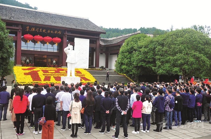 站在朱德同志漢白玉像前,《江蘇國信》雜志綜合部主任倪劍萍沉思良久。他說:“我從小就聽長輩們說起朱德同志一生的事跡,今天第一次來到這里,再一次深切緬懷老一輩無產(chǎn)階級(jí)革命家的豐功偉績,讓我感受頗深?!蹦邉ζ颊J(rèn)為,要繼續(xù)深入挖掘儀隴紅色旅游資源,傳承紅色基因,教育下一代要學(xué)習(xí)老一輩革命家朱德總司令始終堅(jiān)持共產(chǎn)主義信念、永遠(yuǎn)忠誠于黨和人民事業(yè)的崇高精神。