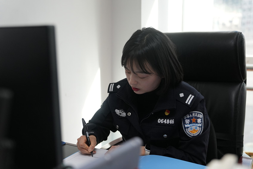 邱壘自進(jìn)入公安機(jī)關(guān)工作以來,以“零”為起點,從一般民警到面面俱到的辦公室主任。這條追光路上,她如陀螺一般未曾停歇,逐漸褪去青澀,沉淀成熟,一步一個腳印,努力實現(xiàn)她當(dāng)初的“入警夢”。