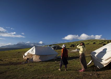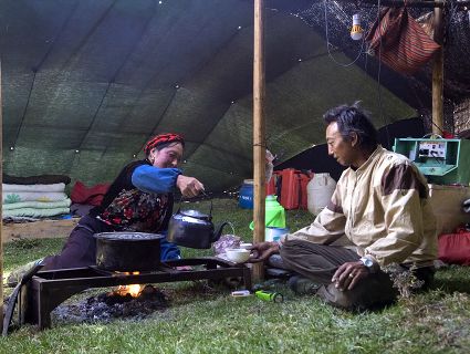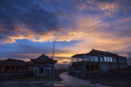 悄然而至的晨曦,隱藏著太古未盡消遁的光芒。揚(yáng)天的旌旗纏成不倒的箭桿,曾經(jīng)的故事還沒走出夢中。草原的安謐,輕輕地?fù)嵛恐届o的牛群。奶香已浸漫晨的清新中,擠奶的姑娘臉頰已鍍上了紅霞的光暈。天地間的沉靜,只等待著第一聲牛哞的響起……草原的清晨,朝陽光臨的一刻,酥油和奶汁的淳香會(huì)醉倒那一片草色碧透的天地。