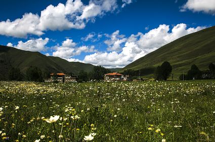 阿須草原,肅穆中的滄桑神秘。雅礱江源頭的世紀(jì)歌韻,青稞間回蕩的輕吟,飽含著世事席卷歲月與生命的贊歌。挺立于藍(lán)天下的英雄塑像,將史海中起伏的頌歌,融入艷陽移動(dòng)的光輝中。我長久駐足仰望,沉緬于歷史的風(fēng)塵,英雄號(hào)角吹奏的激情從逝去的歲月中傳出,經(jīng)久不息。早晚盤旋于草崗叢野的驟風(fēng),讓草叢的搖動(dòng)和河柳的起伏都隱蘊(yùn)著刀光箭簇的頌歌。靜聲聆聽,激越的蹄音正從天邊遙遙傳來。